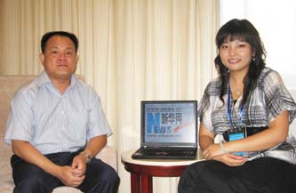 海峡两岸出版交流中心、九州出版社社长徐尚定接受新华网记者专访 新华网 韩新颖 摄