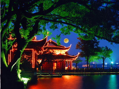扬州瘦西湖的五亭桥,其上置五亭,下列四翼。桥的平面呈"艹"形;桥下纵横共有15孔券洞彼此相连。从里向外看,每个洞外都有一幅不同的景物。每当皓月东升之际,桥孔洞洞都能见明月,形成湖面金波荡漾,众月争辉的奇观。
