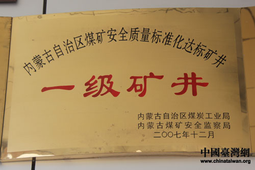 补连塔煤矿荣获2008年全国煤炭工业特级安全高效矿井称号(中国台湾网 王文英 摄)