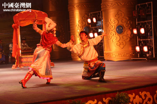 鄂尔多斯婚礼-男女共舞(中国台湾网 王文英 摄)