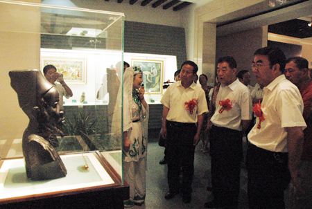 自治区主席助理田明,国际友谊博物馆馆长李进增出席开幕式并观看展览。