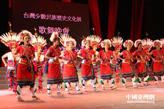 作为台湾少数民族历史文化展活动的组成部分,一场“台湾少数民族原生态歌舞晚会”21晚在全国政协礼堂上演。(中国台湾网 钟宝华 摄)