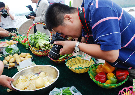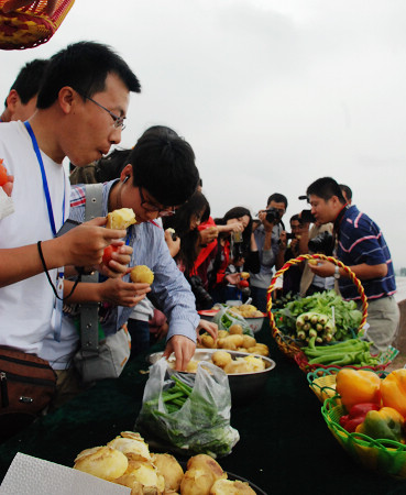 下车后,大家蜂拥而至,迫不及待的品尝美食。“这个烤马铃薯真好吃啊!”“这个蒸开花的更好吃,你尝尝!”“来来,搭配这个辣椒吃,更美味!”一时间,各大网媒的记者们成了美食家,对示范园区的蔬果赞不绝口!