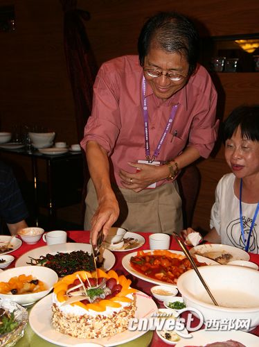 西部网讯 7月16日晚,参加“情系长安——两岸文化联谊行”大型活动的台湾中华文物保护协会理事长庄芳荣在观看完华清池大型真山真水实景历史舞剧后,在晚宴上收到一份惊喜。原来,7月16日是庄芳荣先生的六十三岁生日,作为活动承办方,陕西省台湾事务办公室的工作人员在晚宴为庄先生特意准备了生日蛋糕,并号召现场所有嘉宾为庄先生唱起生日快乐歌。这个特别的安排让庄先生倍感温暖。庄先生告诉记者,自己非常感谢活动组织方的细心和贴心,是他们让自己在陕西度过的这个生日将变得非常难忘。