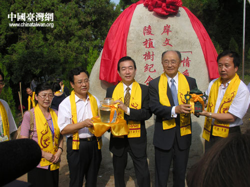 程建人、焦仁和与延安市、黄陵县政府领导一起,为植树纪念碑揭幕。(中国台湾网 芜同 摄)