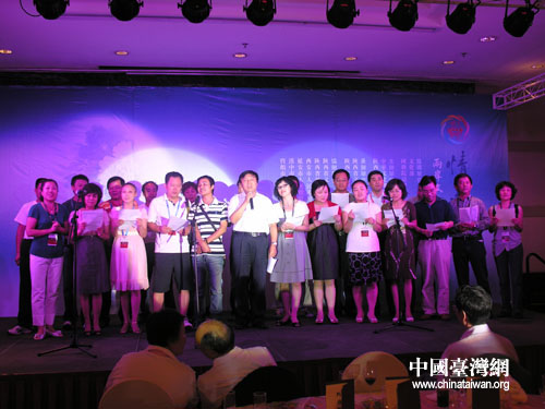 中国台湾网7月23日西安消息 由中华文化联谊会与陕西省政府主办的“情系长安——两岸文化联谊行”,21日晚在古城西安圆满闭幕。闭幕式上,参加此次活动的文化界人士为庆祝这次两岸文化界的盛举圆满成功,举行了一场别开生面的大联欢。无论是衣冠楚楚的教授还是彬彬有礼的文化官员,无论是满腹经纶的学者,还是各有所长的艺术家,每个人拿出看家本领,各显其能,让闭幕式沉浸在欢歌笑语中。