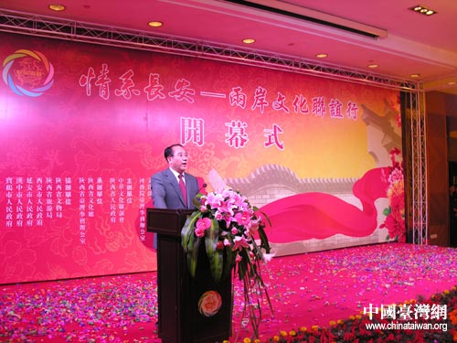 出席开幕式的文化部副部长、中华文化联谊会顾问王文章在开幕式致词时说:长安胜地,华夏古邦,历史悠远,文化荣昌;大家汇聚一起,高朋满座,畅叙情怀,惠风和畅,不亦乐乎!在我们脚下的这片黄土地,见证了秦、汉、隋、唐等十三个王朝都城的的兴衰与沧桑,华夏各种文明在这里相互融合,发扬光大,我们先人那种敢为天下先的开拓精神与海纳百川的包容气概,激励着海峡两岸的炎黄子孙努力奋斗,相互借鉴,合作发展,共同传承和弘扬我们共同的文明。