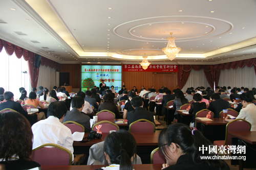 中国台湾网10月21日台北消息 今天上午,由中国宋庆龄基金会、中国教育协会、台湾省教育会主办的第二届两岸青少年社会教育研讨会在台北淡江大学开幕。此次研讨会的主题是:优化育人环境、奠定人生基础、当前中小学养成教育所面对的困境与思考,来自两岸的数十所中小学校长教师以及多名大学教授、知名专家学者等100余人与会交流。此前,大陆参访团成员还与200多所台湾中小学校长教师进行了接触和交流。