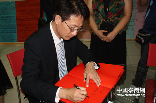 台湾省教育会理事长郭添财留言(中国台湾网 李丹 摄)