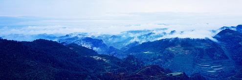 梵净山坐落贵州铜仁地区的江口、印江、松桃三县结合部,海拔不是太高(相对西部山峰而言),为2572米,是武陵山脉的主峰,也是贵州的第一高山。山峰上有两个金顶,北面的为老金顶,南面的为新金顶(后人为了便于称谓山上两个主峰,故此),本主题反映的是新金顶。