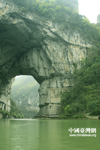 山间空气异常清新,乘着游船行进在翡翠般碧绿的乐安江面上,雄奇、壮美的云门囤豁然展现眼前,令人震撼。江两岸悬崖小径直至山顶,树木种类繁多,原生态岩溶植被保存完好。大诗人李白在《蜀道难》中写的“蚕从及鱼凫,开国何茫然。尔来四万八千岁,不与秦塞通人烟”,也只是追溯到巴蜀文化的上古史,而我们今天看到的风光并非人工所能为,是大自然在几百万年的不断变迁、演化中形成的山河格局,它绝对是古老而神圣的。