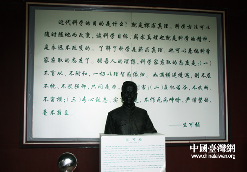 陈列馆中竺可桢、苏步青、程开甲等的书籍(中国台湾网 李丹 摄)