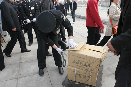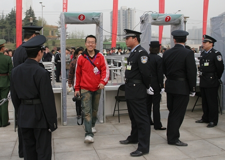 西部网讯 第十一届西洽会2007年4月6日在西安隆重开幕,为确保会议安全,大会特设19个安全门负责进馆安检工作。