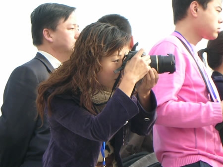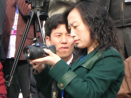 西部网讯 第十一届中国东西部合作与投资贸易洽谈会4月6号上午在西安曲江国际会展中心隆重开幕。开幕式上各大媒体的女记者一展风采。