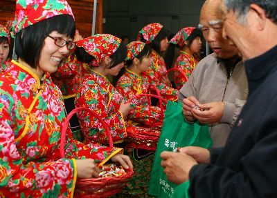 陕北姑娘请人们品尝枣糖