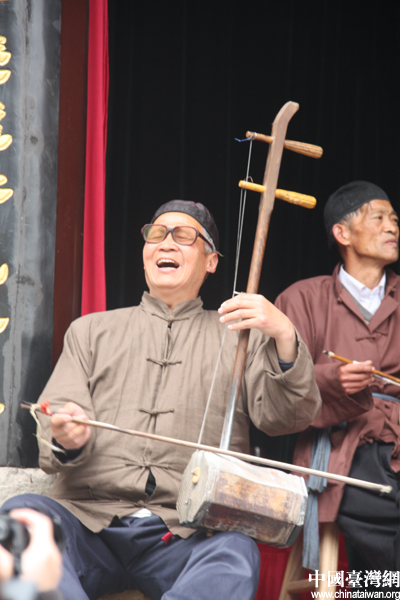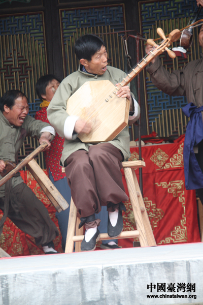 关中老腔演员神情投入的表演(中国台湾网 何建峰 摄)