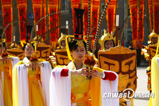 庚寅年清明公祭黄帝典礼“乐舞告祭”导演王宏:今年增加了一个序礼,第一个就是武舞,舞干器、盾牌和斧钺,另一个文舞,拿着古代祭祀的翎子。有一个最大的变化就是序礼里面用了孙中山的祭文来作为主题歌贯穿的,把古代的祭祀和我们今人的祭祀结合在一起,体现世界华人大家共同归于黄帝祖先的血脉连接。(记者 贾存真)