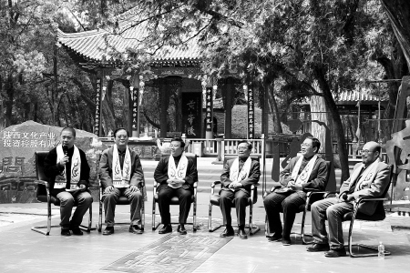 (左起)梁冬、徐文兵、朱大可、肖云儒、张宝通和王东岳参加“问道轩辕”活动。 记者 张静 摄
