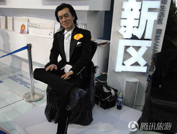 第十五届中国东西部合作与投资贸易洽谈会今天(6日)上午在陕西西安开幕。各个展馆异彩纷呈,更纷呈的是曲江新区展馆一直熙熙攘攘水泄不通,挤了半天才发现有大明星在此——中央电视台著名主持人李咏,竟然有粉丝准备索要签名,才被告知这是仿真硅像机器人。