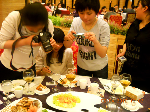 4月5日,网媒记者做客西安饭庄。西安饭庄以“陕菜正宗”、“陕西风味大全”闻名于世,金奖葫芦鸡、菜胆鹿筋、金线油塔、秦唐四宝羹,这些色香味俱佳的特色菜让记者们对陕菜刮目相看,赞不绝口。