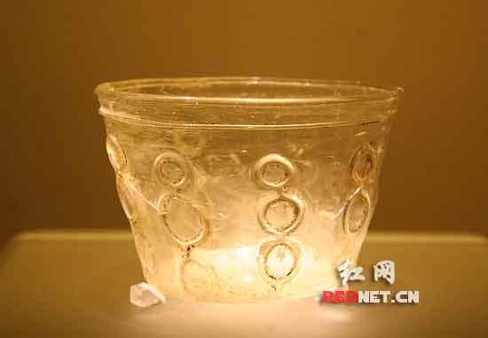 (何家村文物展中唯一的一件玻璃器皿,当时玻璃器皿价值比金银玉器更珍贵)
