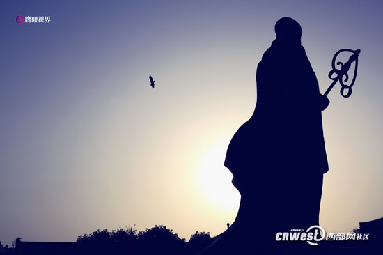 大雁塔是楼阁式砖塔,高64.517米,底层边长25米,塔身呈方形角锥体,坐落在底面积42.5×48.5米,高4.2米的方形砖台上,青砖砌成的塔身磨砖对缝,结构严整,外部由仿木结构形成开间,大小由下而上按比例递减,塔内有螺旋木梯可盘登而上。每层的四面各有一个拱券门洞,可以凭栏远眺。整个建筑气魄宏大,格调庄严古朴,造型简洁稳重,比例协调适度,是唐代建筑艺术的杰作。(网友:雄鹰在蓝天 更多图片>>)