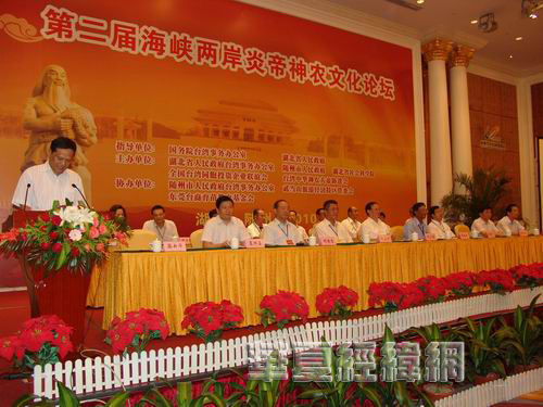 华夏经纬网8月8日讯:8月8日下午两点,第二届海峡两岸炎帝神农文化论坛在随州隆重开幕。台湾“中华神农大帝协进会”、东莞台商育苗教育基金会、台湾崇拜神农大帝的宫观负责人及有关炎帝文化研究机构的专家学者360多人共襄盛会。