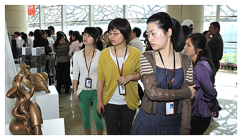 金鸡湖畔的“圆融”、独墅湖高教区前的“升华”、湖滨大道上的轮滑者……一个个令市民熟悉的雕塑都被搬到了科文中心。5月8日,苏州工业园区15周年城市雕塑(摄影)成果展在科文中心开展,68组112件雕塑作品被翻制成模型,配合着120幅优秀摄影作品展示在市民的面前。苏州市副市长朱建胜、园区工委副书记、管委会副主任施玉初出席了开展仪式。