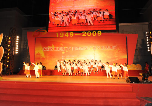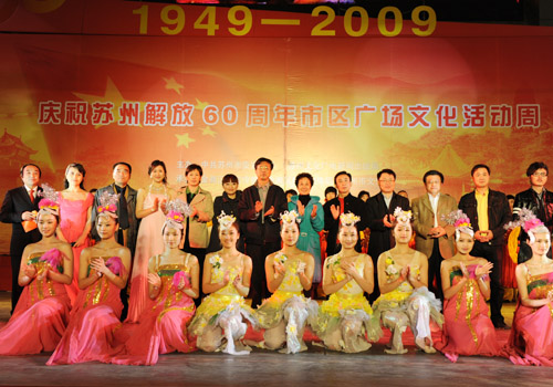 2009年是新中国成立60周年,也是苏州解放60周年。为纪念这一重要的历史时刻,市委宣传部和我局于“4?27”苏州解放日前后在我市各区开展广场演出系列活动。在启动演出后,作为活动周的系列活动,还有7场演出将在各区陆续推出,其中,纪念苏州工业园区建设开发15周年广场演出4月19日在园区中央公园广场举行。阳澄湖镇民间文艺汇演暨圣堂寺庙会4月22日在相城区圣堂寺举行。苏苑街道社区文化艺术节开幕式演出4月26日在吴中区嘉宝广场举行。