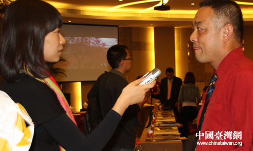 两岸记者采访台湾嘉宾(中国台湾网 王晓蕊 摄)