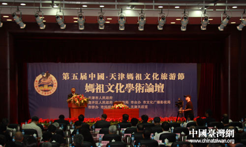 第五届天津妈祖文化旅游节系列活动之妈祖文化学术论坛在天津宾馆举行(中国台湾网 王晓蕊摄)