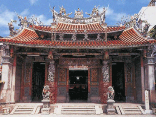祀典台南大天后宫(俗称府城大妈祖庙),在赤崁之南,大井头之北,坐向“窝镜窗”来龙,向“时钟楼”住鳌,旋妈祖港古渡头出台江内海,坐辰向戍兼乙辛。宫主祀神为宋代莆田湄洲林氏女讳默,民间通称娘妈或妈祖。这是台海两岸三地古老的妈祖庙宇之一,也是当今保存完整的古庙之一。从古到今,香火旺盛,海内外朝拜者如潮。