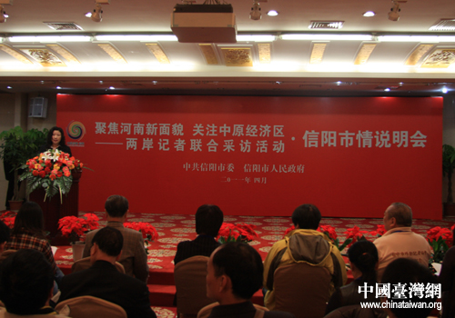 “2011年两岸记者联合采访河南”记者走进河南信阳,信阳市政府举行市情说明会(中国台湾网 吴捷 摄)