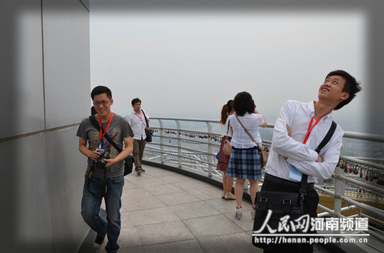 在河南省文化产业的标志性建筑、世界上最高全钢结构塔、388米高度的中原福塔之上,采风团成员集体登高望远,荡胸生层云,俯视瞰大地,将郑州全城美景尽收眼底,不时伸出拇指啧啧夸赞这座高塔的神奇;在吉尼斯纪录“世界上最大的全景画”――《锦秀中原》的精彩绝伦演绎前,采风团成员目不暇接、如痴如醉。总面积3012.365平方米的全景画,依次展现着“天地之中”历史建筑群、洛阳龙门石窟、安阳殷墟三处世界文化遗产,及河南各市历史、文化传神之处,恢弘的气势、苍茫的意境、悠久的历史、厚重的中原,让围观的采风团成员时而全神贯注、时而低低赞叹,观赏完毕,仍久久不愿离去。