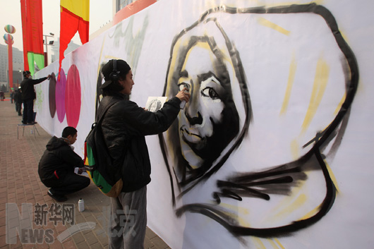 11月18日,表演者在北京文博会上进行涂鸦表演。