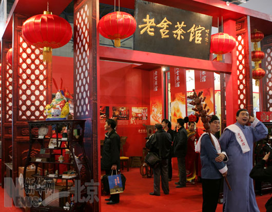 11月18日,在文博会上拍摄的老舍茶馆展台。