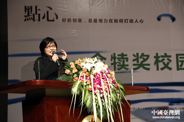 3月20日下午,由旺旺中时媒体集团主办、中国台湾网媒体协办的第22届时报金犊奖在中国传媒大学举行首场巡讲会,旺旺中时文化传媒(北京)有限公司总经理林淑黛作为主办单位代表发表致辞。(中国台湾网 张洁 摄)