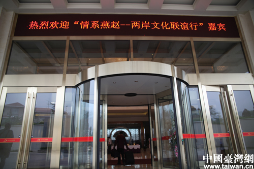 8日下午,前来参与“情系燕赵——两岸文化联谊行活动”的两岸嘉宾陆续抵达。而相关酒店也早已打出横幅欢迎两岸嘉宾的到来。(中国台湾网 高斯斯 摄)