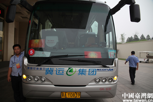“情系燕赵——两岸文化联谊行活动”为期10天。图为会务组为两岸嘉宾准备的接送大巴。(中国台湾网 高斯斯 摄)