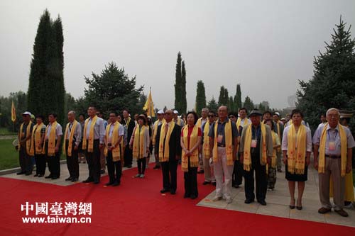 14日上午,“情系燕赵——两岸文化联谊行”百余位两岸嘉宾在涿鹿县黄帝城中华三祖堂前共同祭拜了中华民族的三大文明始祖——黄帝、炎帝、蚩尤。(中国台湾网 高斯斯 摄)