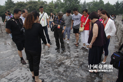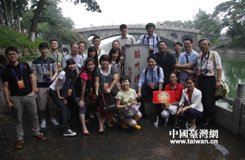 参加“情系燕赵”活动的台湾文化界人士在赵州桥合影留念(中国台湾网记者 芜同 摄)