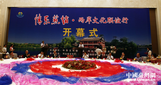 中国台湾网7月9日石家庄消息 7月9日晚间,由中华文化联谊会和河北省人民政府共同主办的“情系燕赵——两岸文化联谊行”活动在河北石家庄隆重开幕。100余位台湾文化教育界人士与大陆文化界代表共聚河北,一起感受燕赵大地的历史文化。