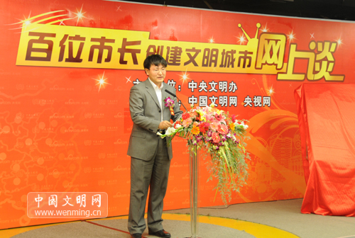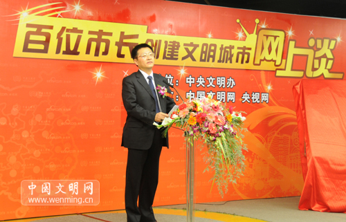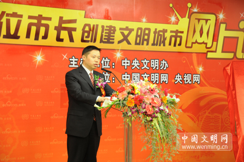 2月25日,由中央文明办主办,中国文明网联合央视网等中央重点新闻网站推出的“百位市长创建文明城市网上谈”大型主题活动启动仪式在央视网举行。 图为成都市委副书记、市长葛红林在启动仪式上讲话。 中国文明网 路弘 摄