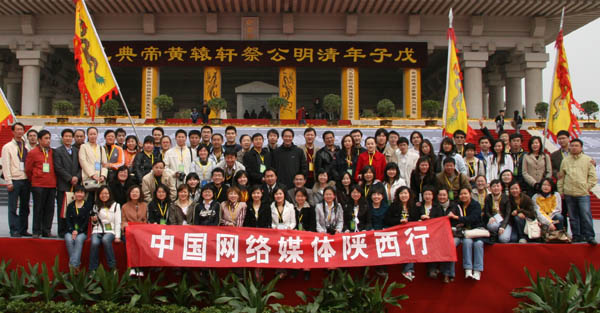 第二届中国网络媒体陕西行的一项重要采访活动,就是报道清明公祭轩辕黄帝典礼,来自全国各地的62家网络媒体齐聚黄陵网上直播祭祖盛况,见证了来自海内外的八千多名中华儿女共同祭拜中华民族的“人文始祖”轩辕黄帝,缅怀我们共同先祖。这次参加祭祀的台湾同胞有200余人,亲民党秘书长秦金生、中国国民党中央评议会主席叶金凤、台湾知名人士蔡加福、林德福、全国台湾同胞投资企业联谊会会长张汉文、台湾中国统一联盟主席王津平代表台湾同胞敬献了花篮。