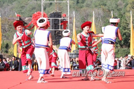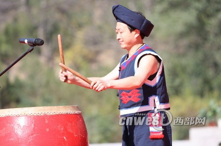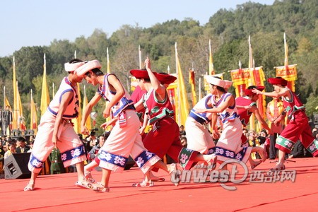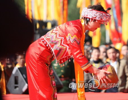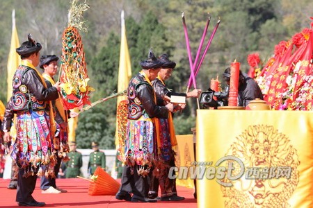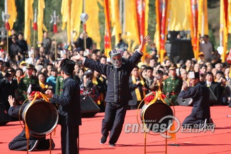 中华民族共祭轩辕黄帝大典上 少数民族兄弟用本民族的仪式祭奠轩辕黄帝