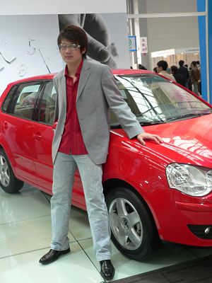 西部网讯 在西洽会上展出的许多名牌汽车旁边往往站着一名靓丽的女模特,香车美女让众多游客驻足观看,但是在上海大众汽车的展位上,却站着一名男车模。