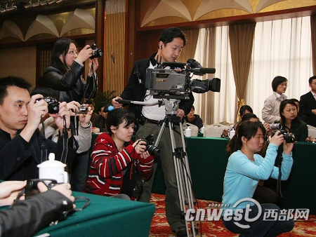 西部网讯 2008年中国网络媒体聚焦西洽会活动今天于西安正式启动,全国25家网络媒体出席了新闻发布会,就各自关注的本届西洽会重点亮点问题向西洽会组委会提问。陕西省副省长景俊海等相关负责人为记者们一一作答。