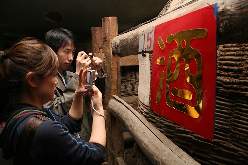 记者们对储藏酒的“酒海”非常感兴趣,纷纷与自己同年“出生”的美酒留影