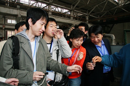 参加第二届网络媒体陕西行的记者们参观陕西西凤酒厂