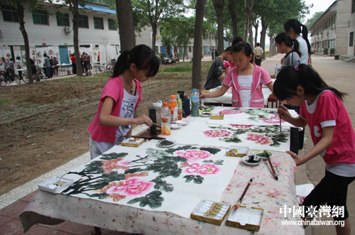 中国台湾网5月27日洛阳消息 男女老少画牡丹,幸福生活吉祥如意。这就是5月27日第八届“网上看河南”北线采风团在洛阳孟津县平乐镇平乐村看到的景象。